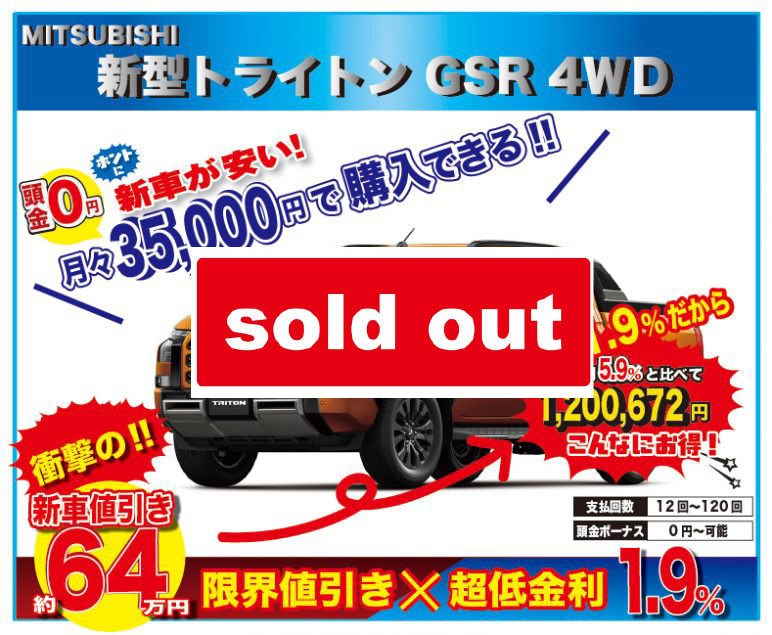 - 来店不要 小川オート台数限定 大決算セール!【限定3台】ミツビシ 新車トライトン GSR 4WD 新車値引き国内最安値に挑戦中!!