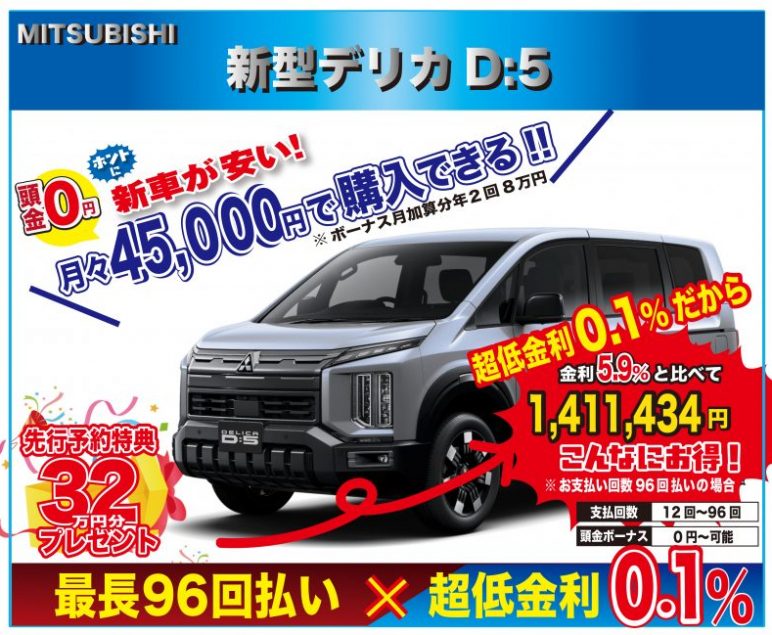 今なら、ミツビシ 新車 新型デリカD:5が